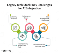 Once effective, legacy tech stacks often find it hard to accommodate the requirements of current AI applications. Built for a different time, these systems focus chiefly on fundamental data processing and storage, neglecting the insight into the complex demands of AI. Here are some of the key challenges that legacy systems present: